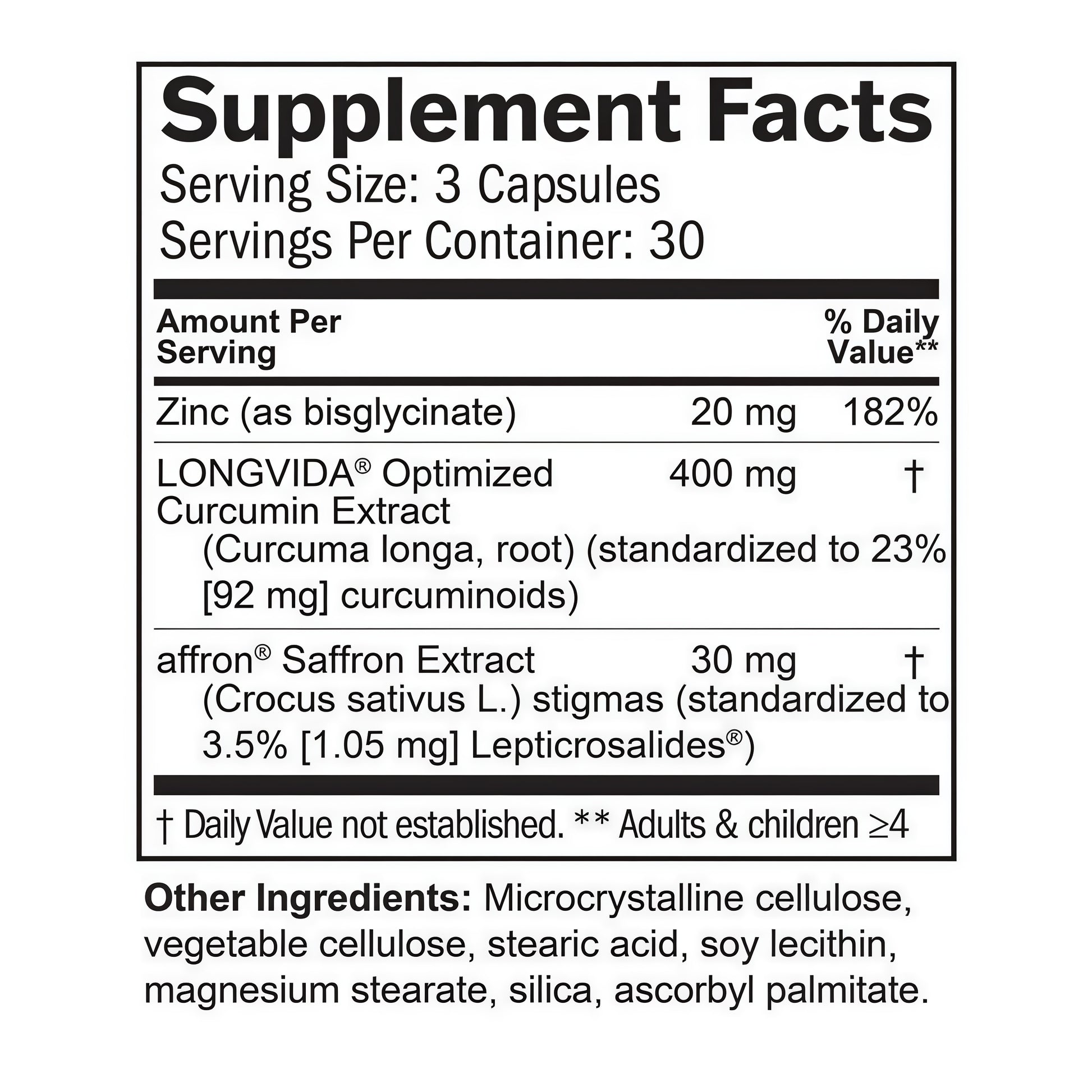 Support emotional balance and everyday resilience with a science-driven blend of affron® Saffron Extract, LONGVIDA® Curcumin, and high-absorption Zinc.